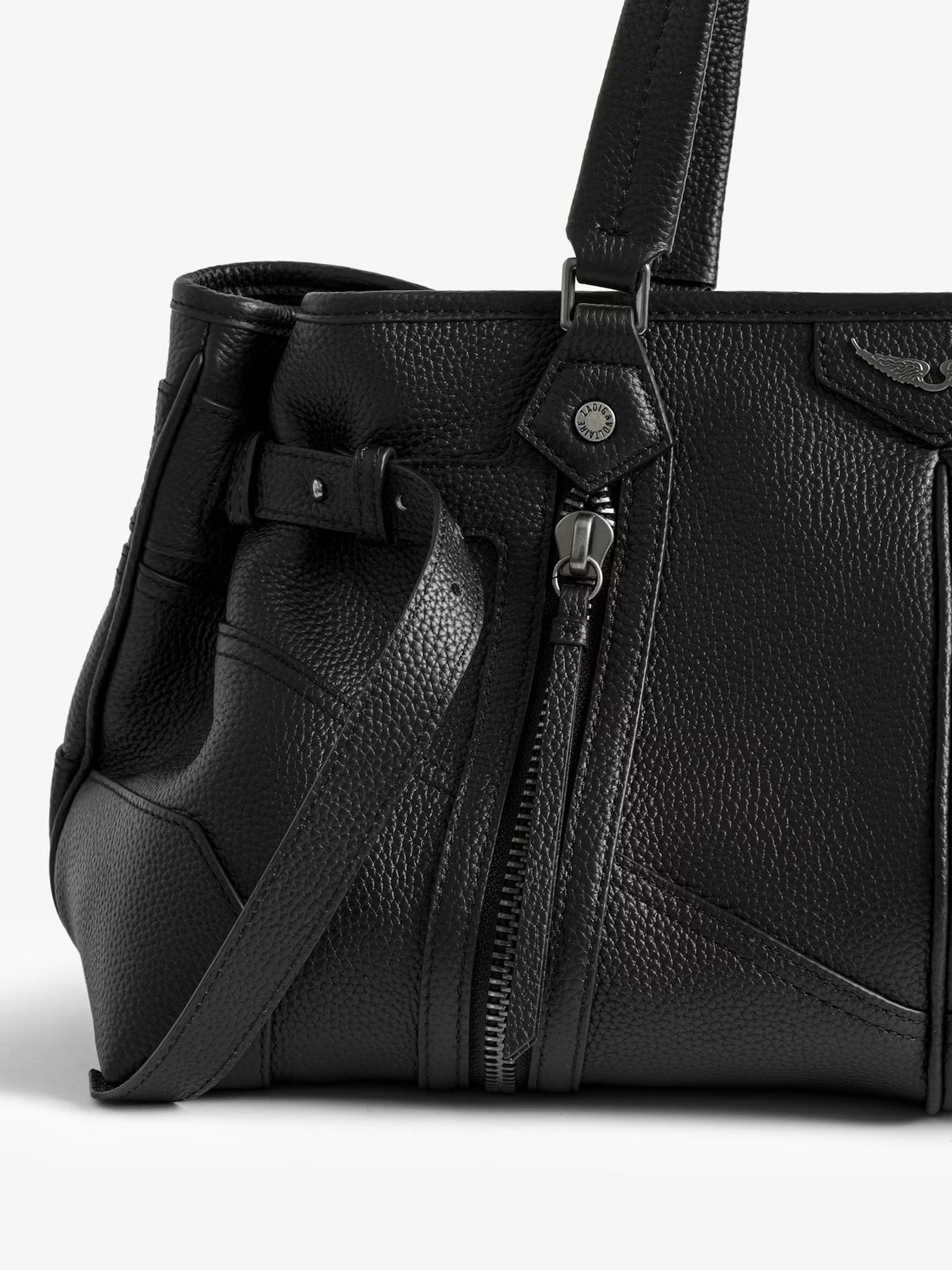 Cartera de cuero con asas cortas.