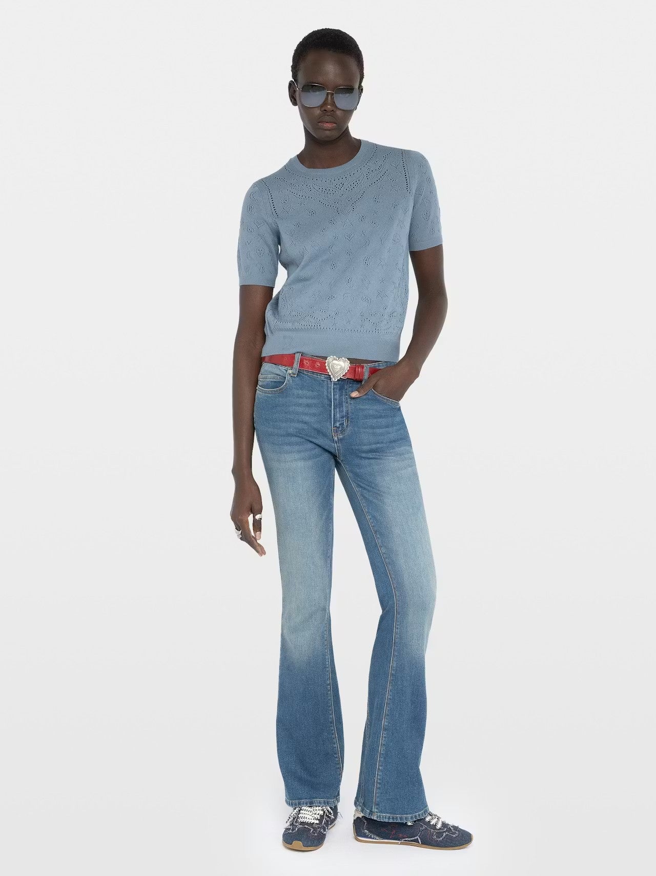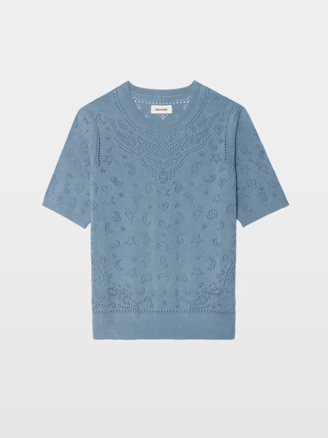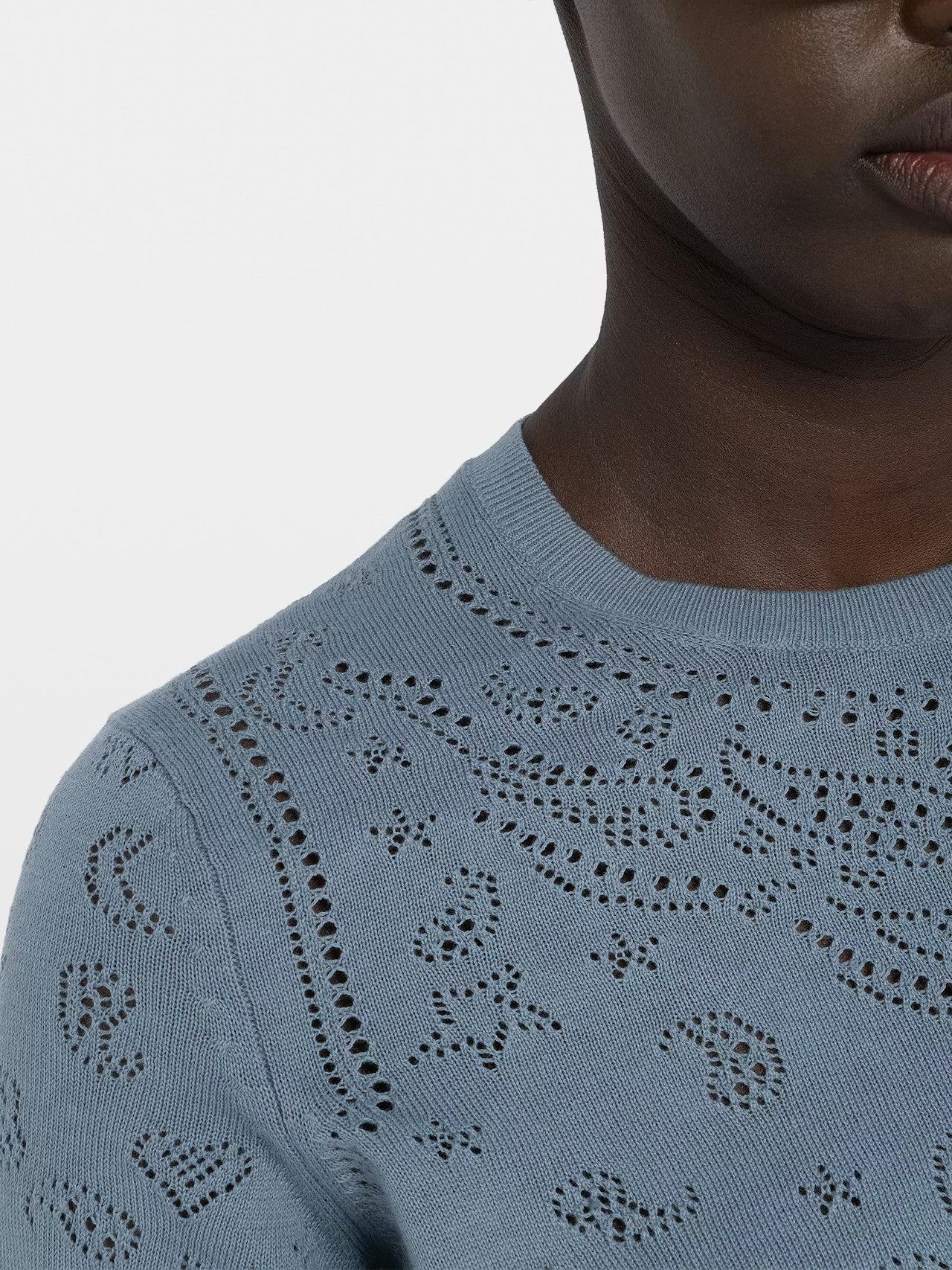 Sweater de cuello redondo con mangas cortas y punto calado.