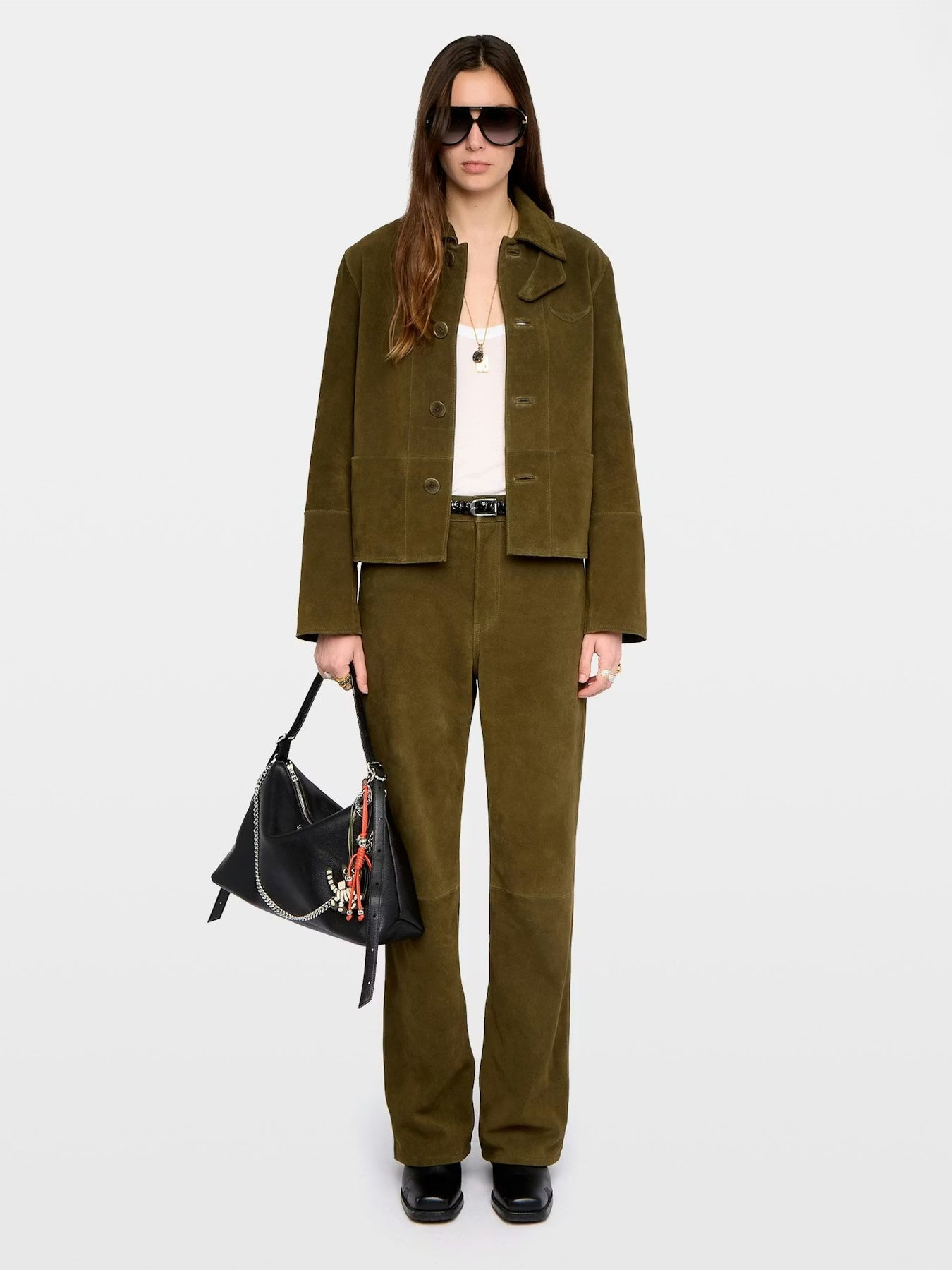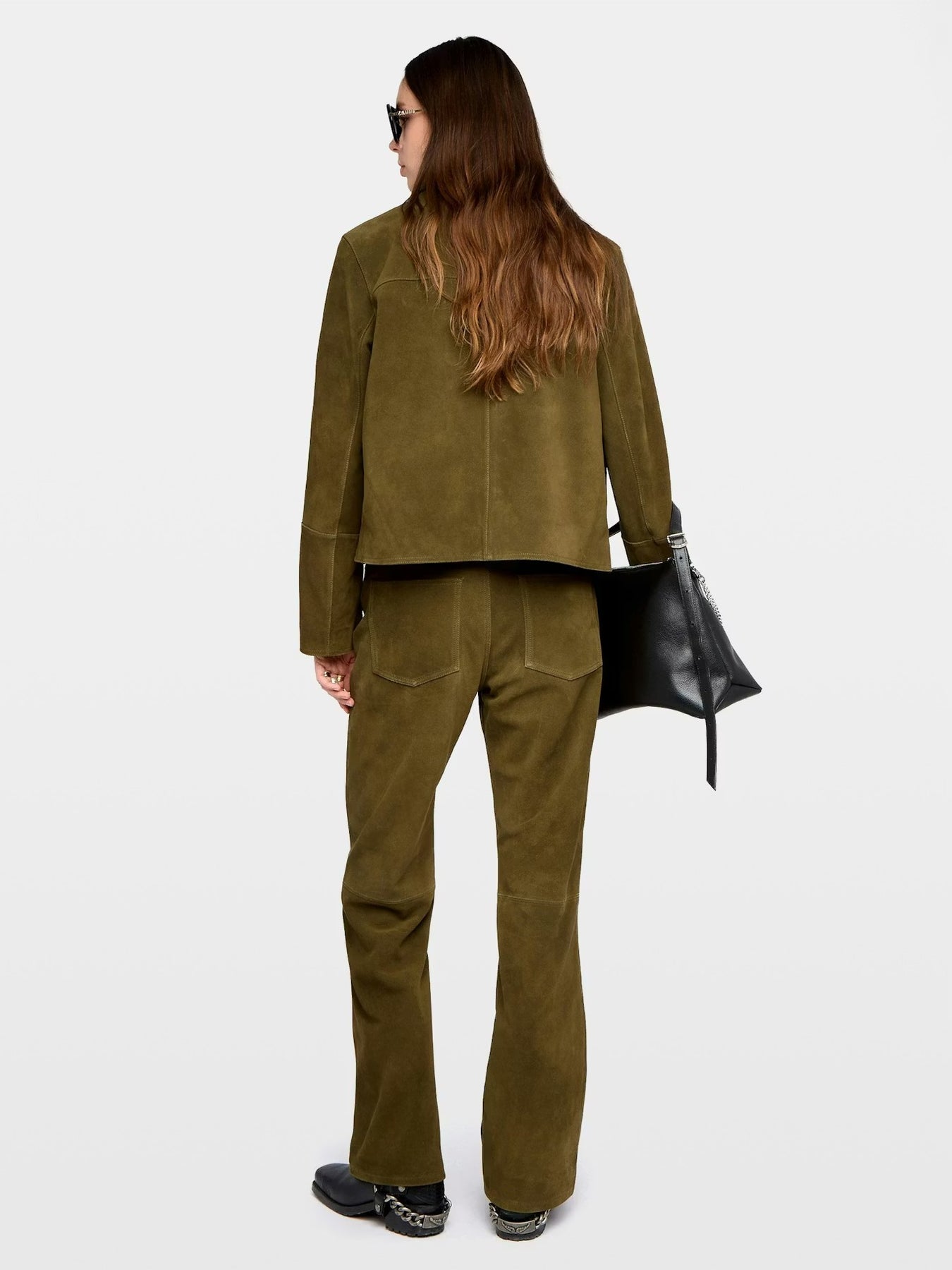 Chaqueta corta de gamuza con alas en relieve.
