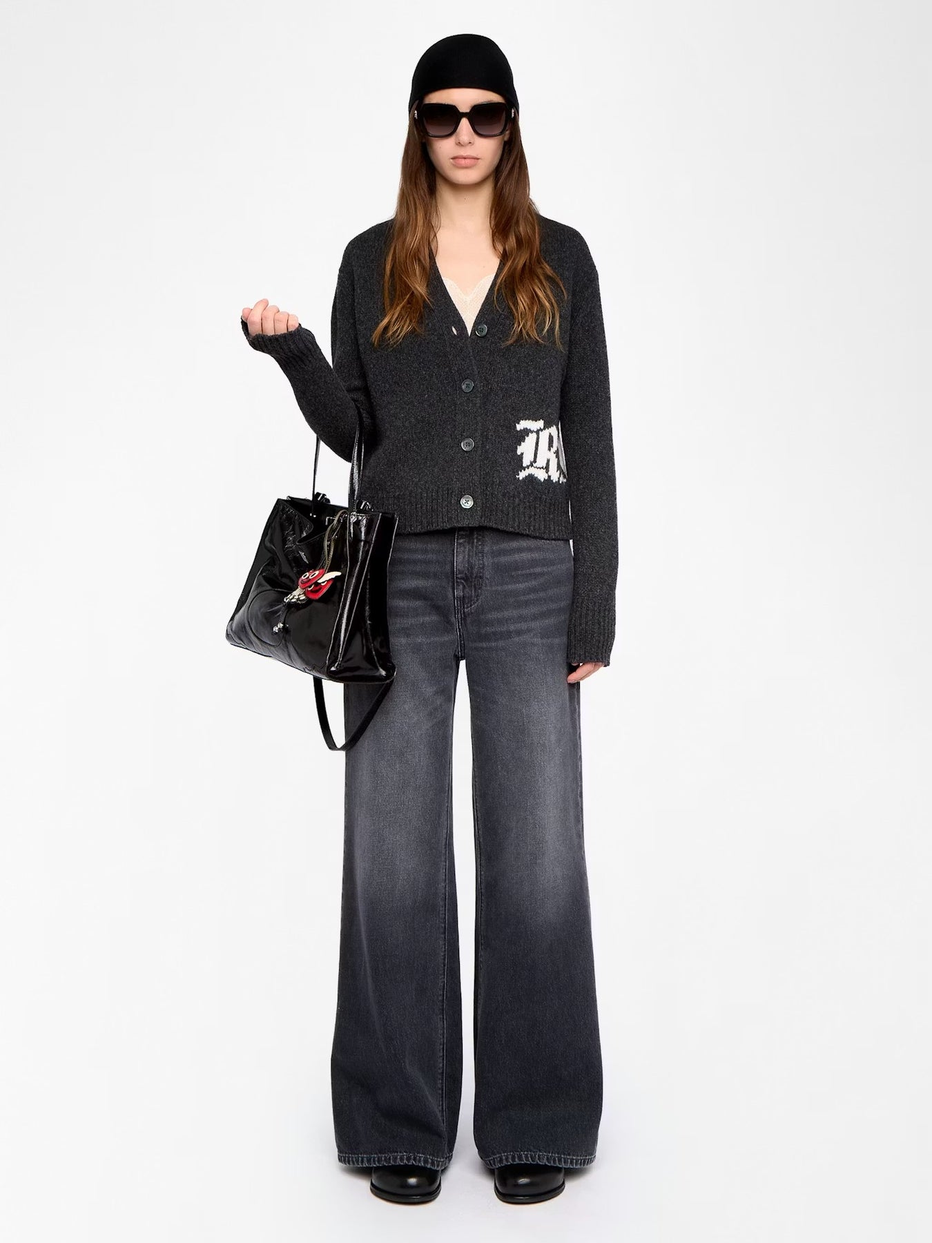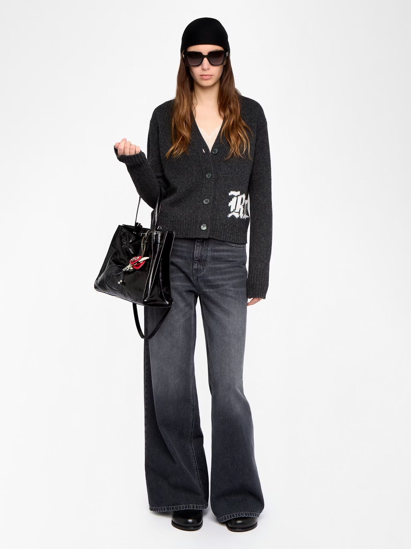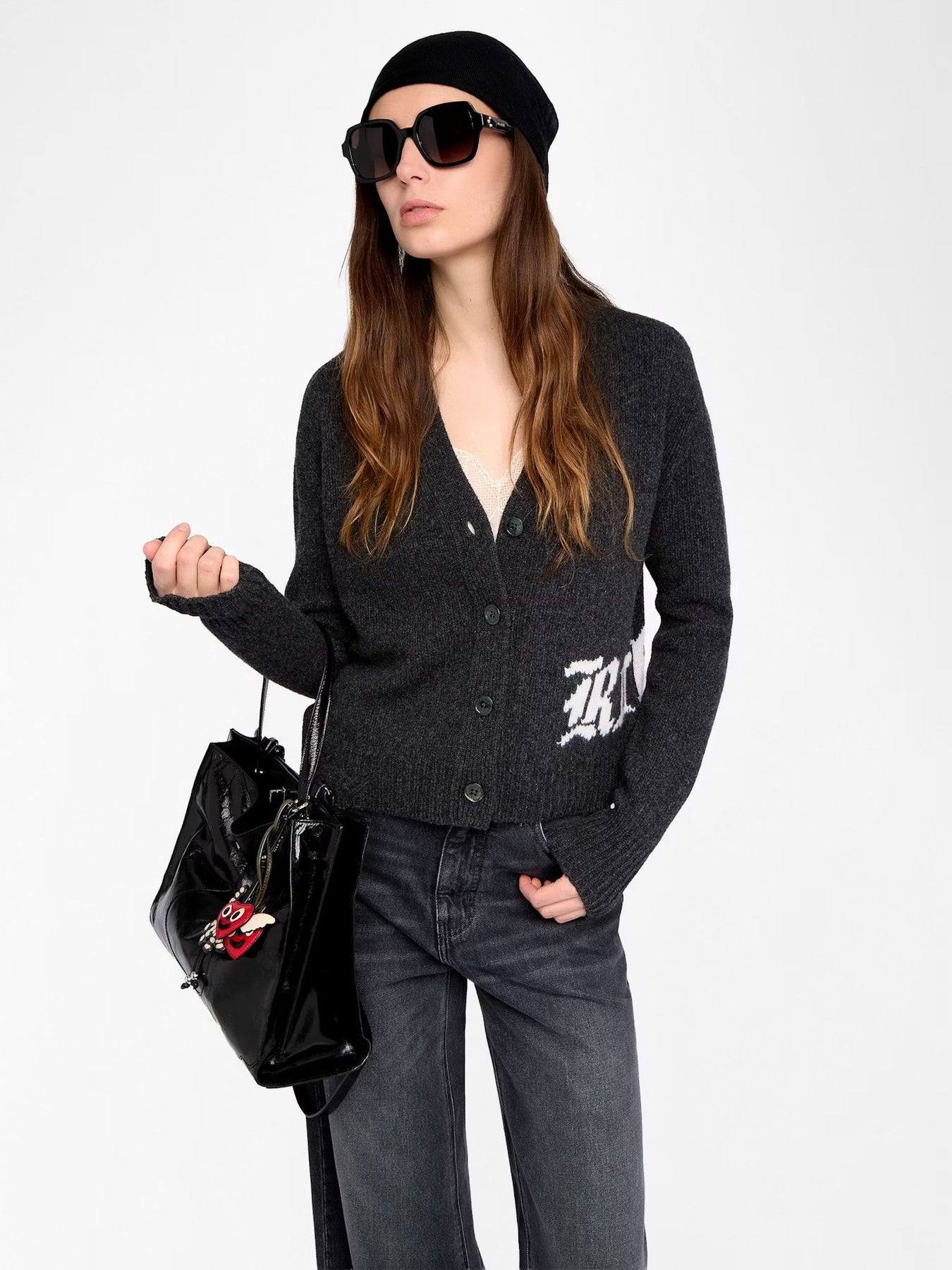 Cardigan con bordado Rock y abotonado al frente.