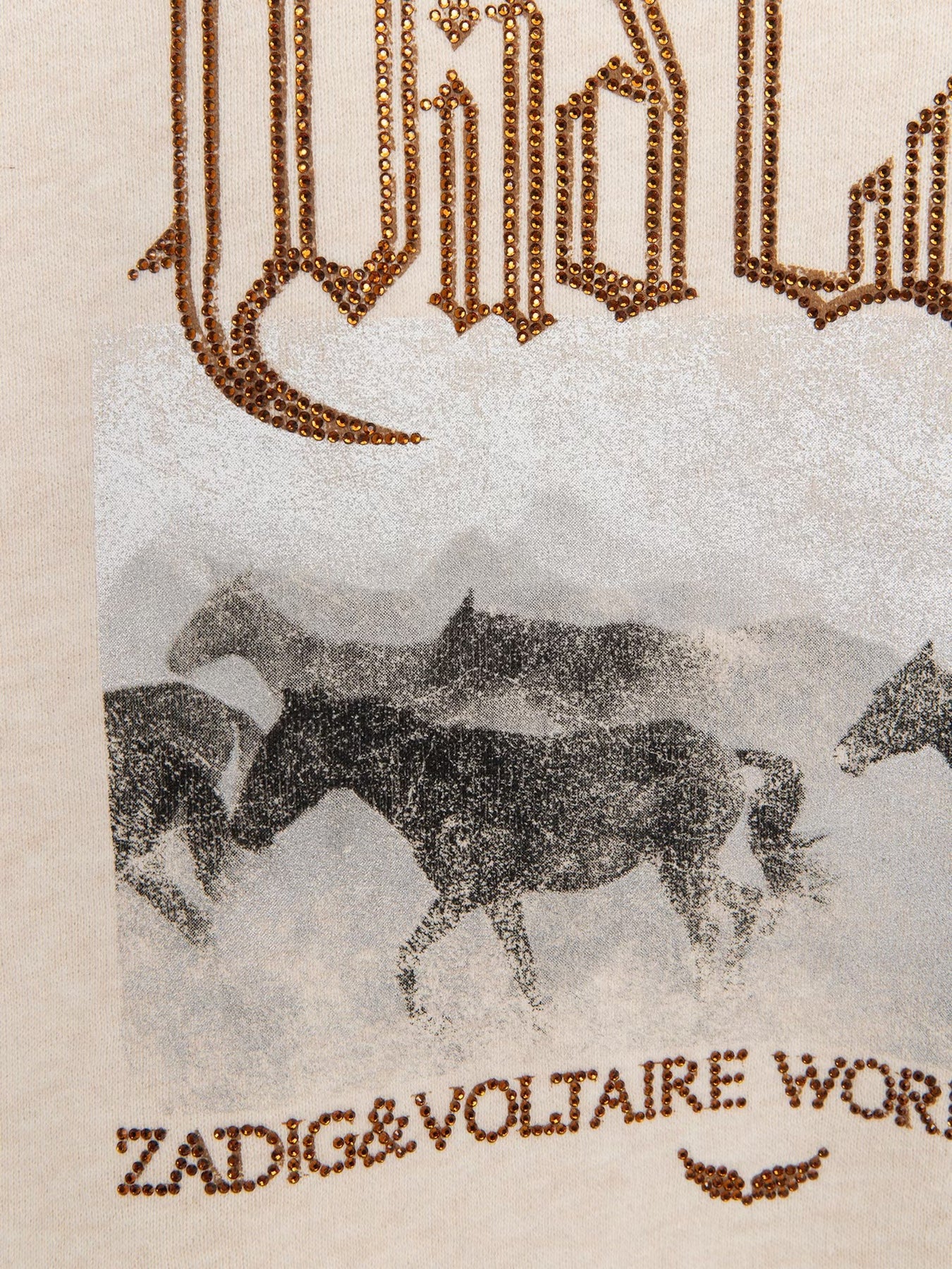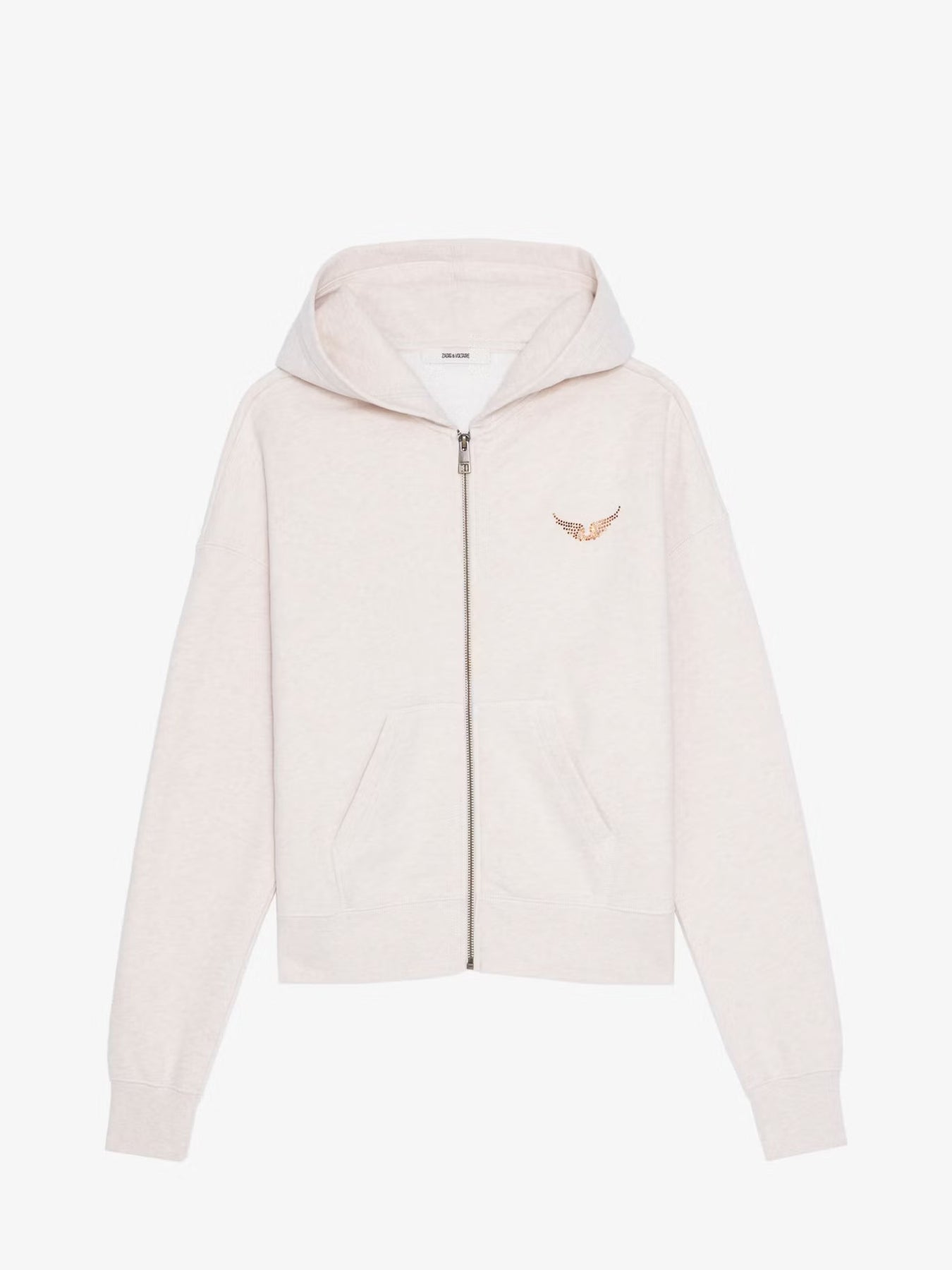 Polerón con capucha y cierre, con estampado en strass en la espalda.