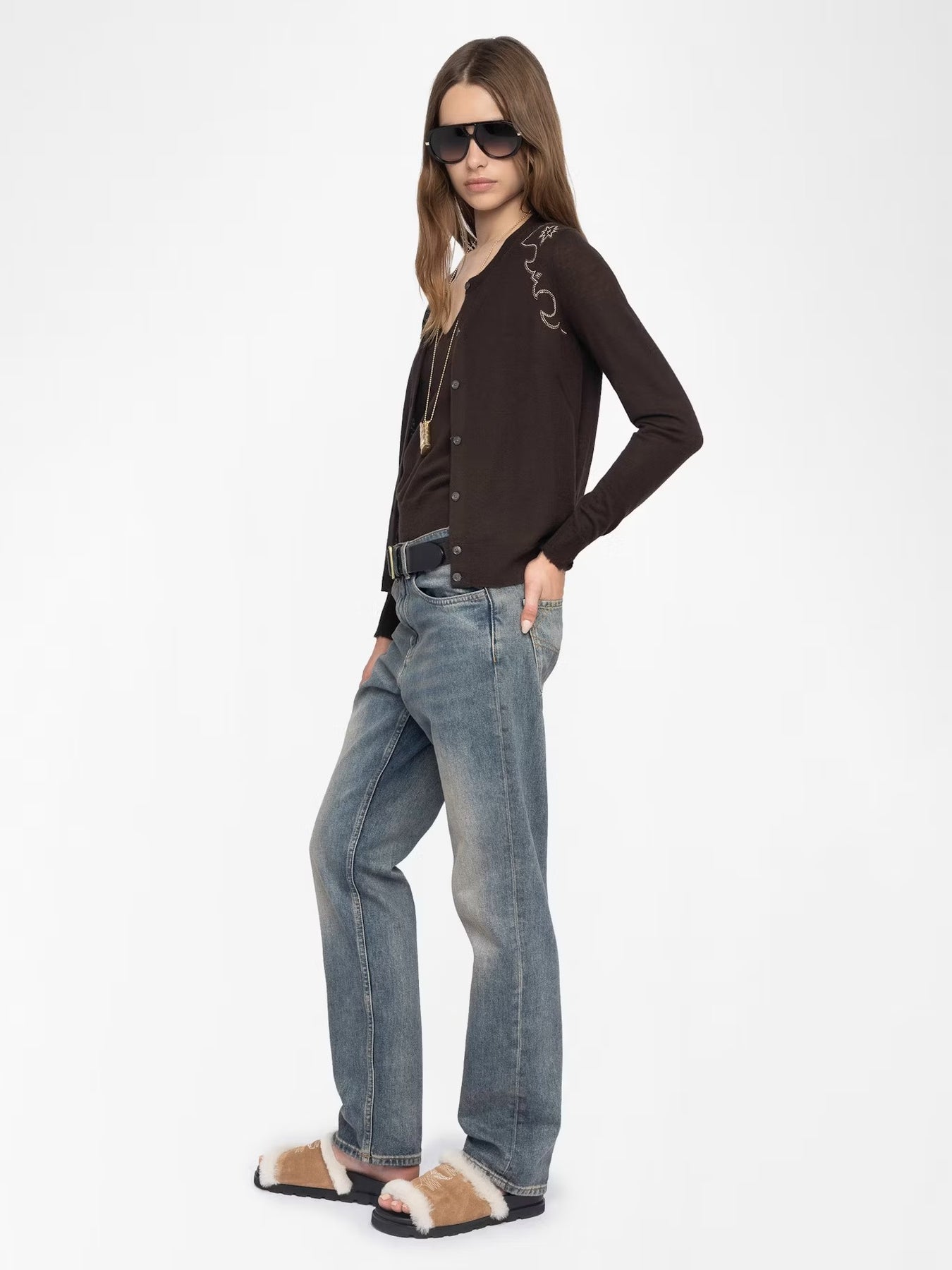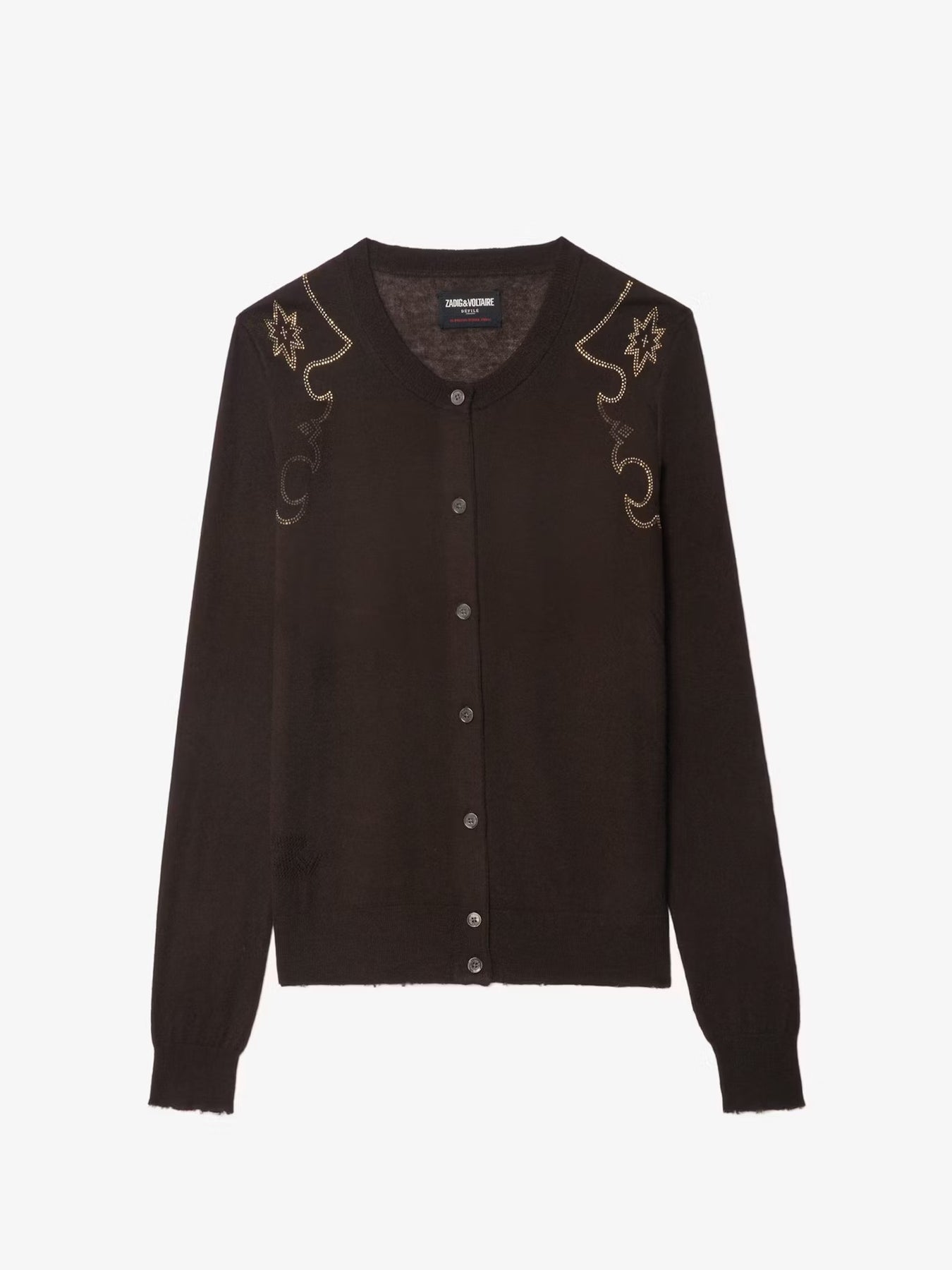 Sweater abotonado con diseño western en strass sobre los hombros.