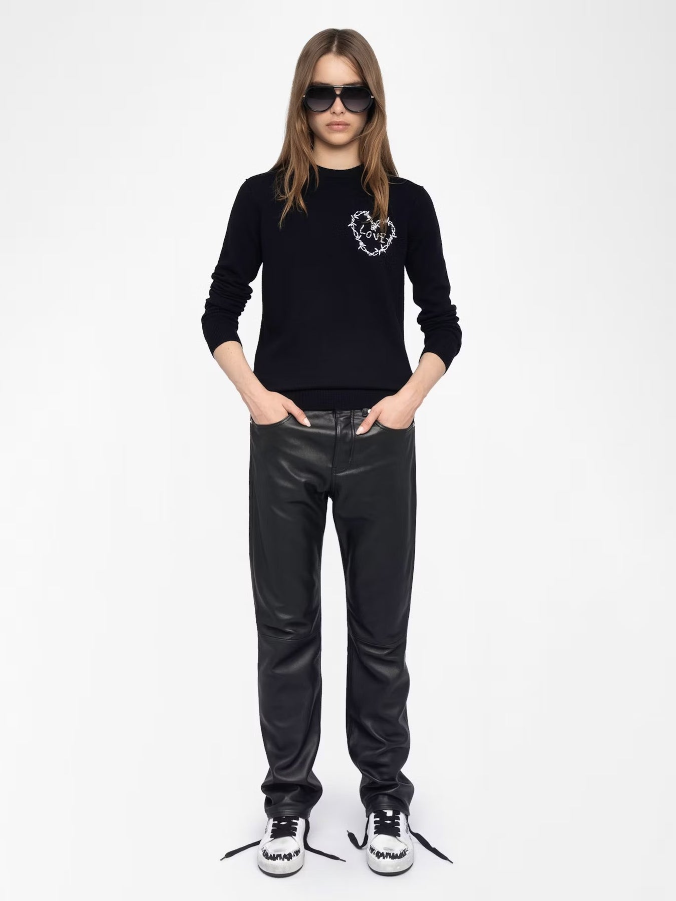 Sweater con bordado de corazón en la parte izquierda.