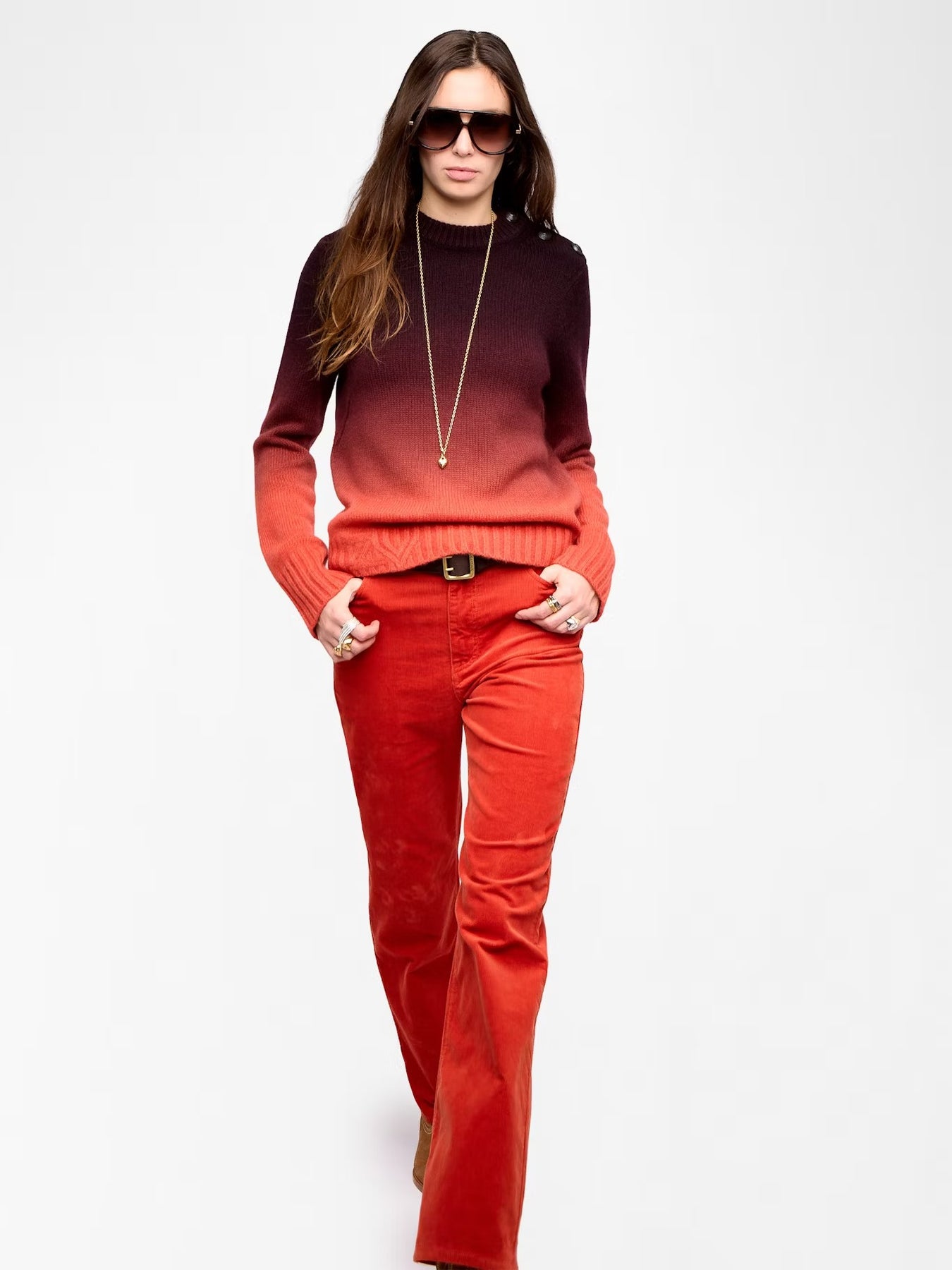 Sweater de cuello redondo con abertura en el cuello, botones tipo ala y efecto degradado.