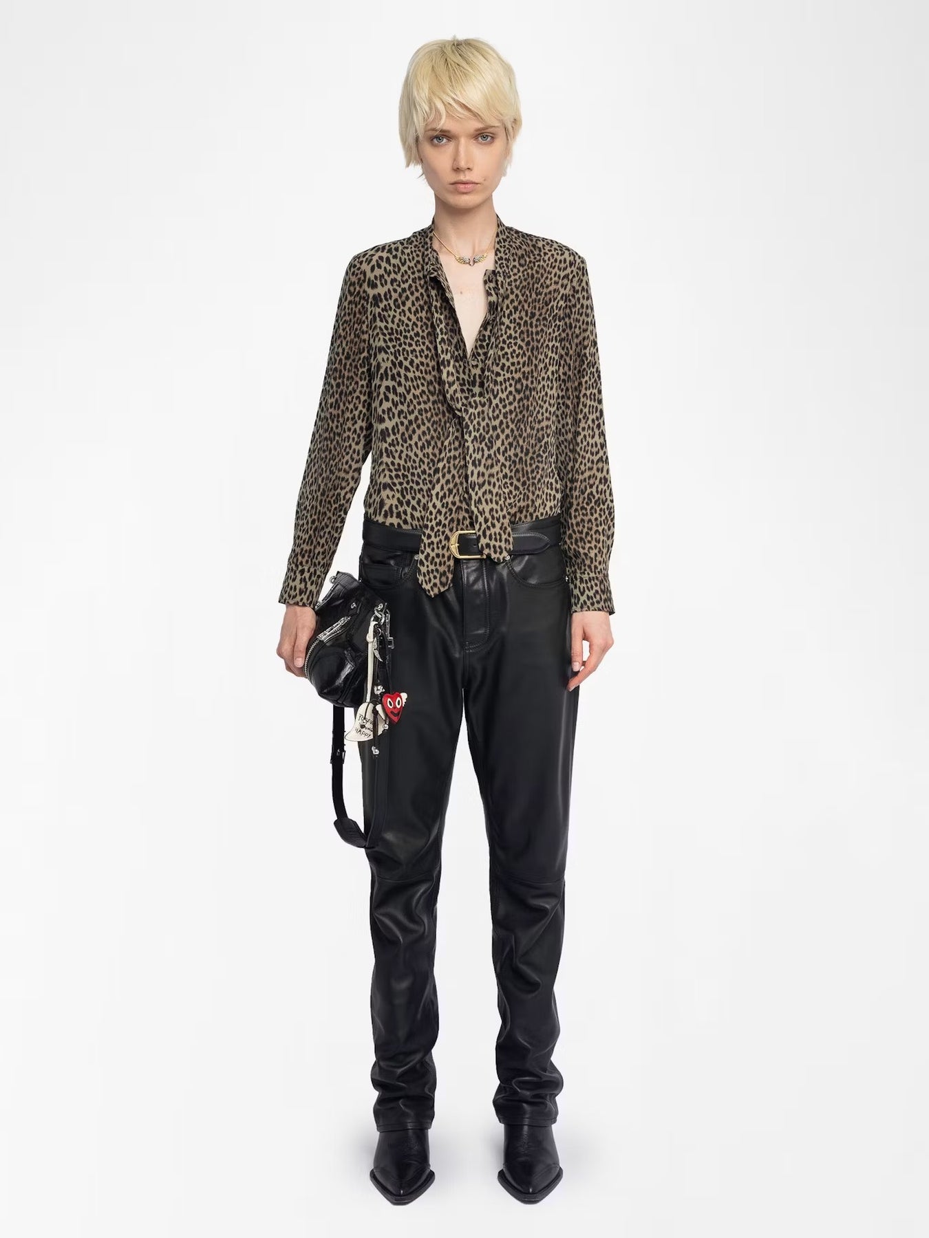 Blusa de satin con cuello lavallière y alas en strass en la espalda.