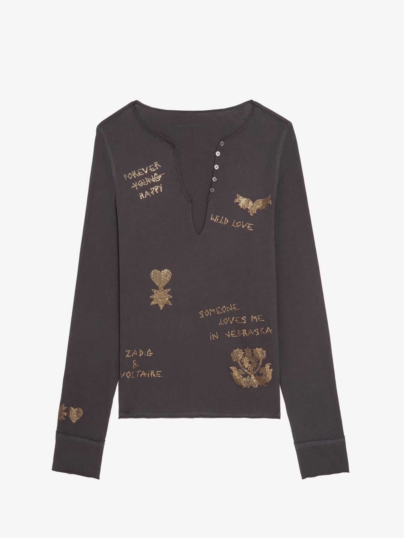 Polera de escote en V con estampado en strass.